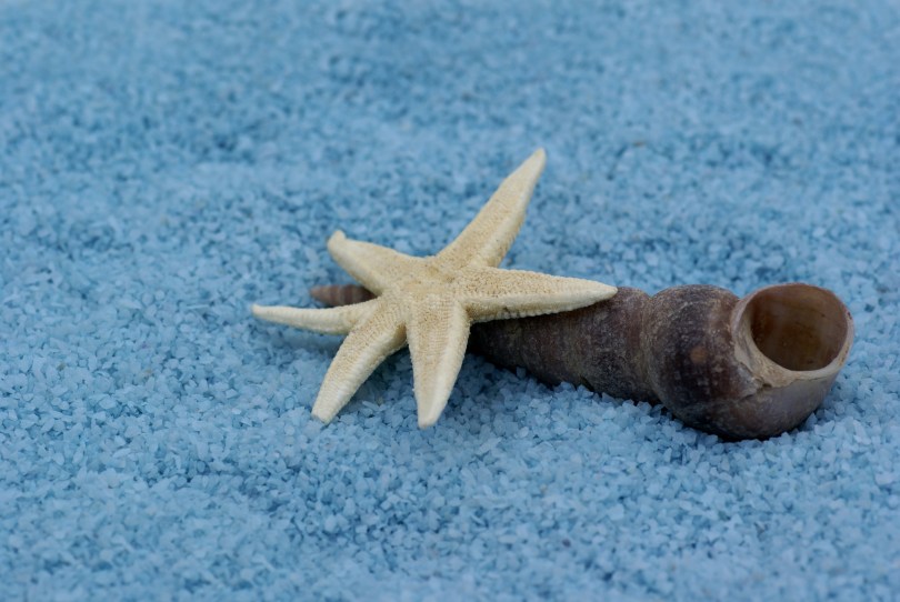 Bath salts. January 9, 2012 3872 × 2592 Looking to be Born Again? Shell and sea-urchin in blue bat-salts.